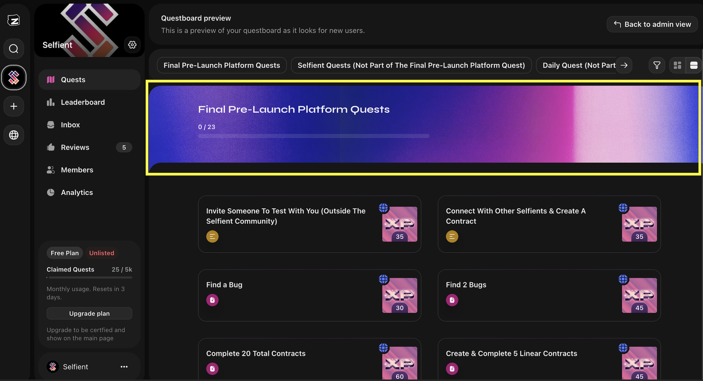 ### 1. To view the quest on Zealy please visit: <https://zealy.io/cw/selfient/questboard>